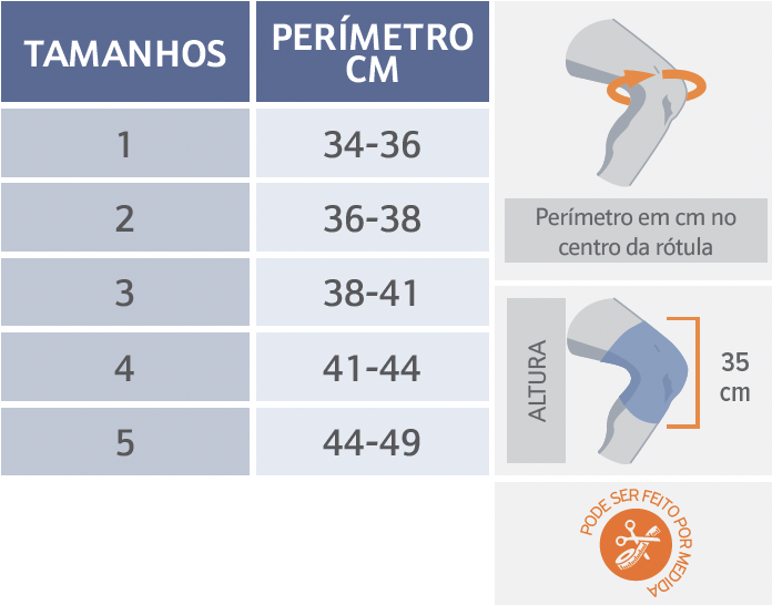 - Reforço posterior na zona poplítea com ajuste em 4 tiras com microgancho de velcro, permitindo a limitação de movimento a aplicar;