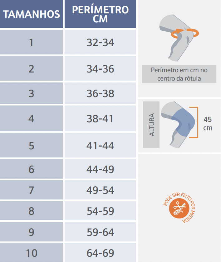 Fabricado em material tricapa elástico e respirável. Composto por 3 capas que se dividem em um tecido elástico com uma base de microfibras, espuma de poliuretano e fio de algodão, facilitando a circulação da transpiração, tem uma maior elasticidade e facilita a adaptação da ortótese ao paciente. Contém pontos de silicone em toda a zona interior evitando que a ortótese se desloque da sua posição inicial. Abertura anterior em toda a longitude da ortótese para facilitar a colocação da mesma. Articulação policêntrica com intervalos de 0-15-30-60-90 graus de flexo-extensão. Tiras de ajuste nas zonas femoral e tibial permitindo um ajuste mais firme.