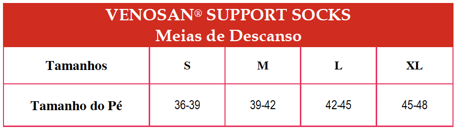 A linha Venosan Suppot Socks é considerada uma linha de meias de descanso indicada para situações de pequenos edemas, varizes simples, varizes de gravidez e pernas cansadas.